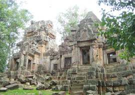 The main temple at Banteay Chhmar is surrounded by 9 satellite temples in the nearby. Like the main temple, most of these temples have received very little study and documentation. Many are in ruins, but still intriguing to visit.The two most popular temples for picnics are Prasat (Temple) Ta Prohm and Prasat Samnang Tasok. Prasat Ta Prohm has excellent examples of the Bayon-style face towers. Prasat Samnang Tasok has more of a jungle feel to it, as it is surrounded by thick vegetation and a moat.