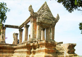 Preah Vihear Temple has the most spectacular setting of all the temples built during the Khmer Empire which lasted for six centuries. The temple is composed of a series of sanctuaries linked by a system of pavements and staircases over an 800 metre long axis and is built with a clear view of the plains from where it stands. Dedicated to Shiva, this temple is unusual among Khmer temples in being constructed along a long north-south axis rather than having the conventional rectangular plan with orientation toward the east. However, although the structure of this temple is very different from the temple ‘mountains’ found at Angkor, it is believed to have been built to serve the same purpose as a stylized representation of Mount Meru, the home of the gods.