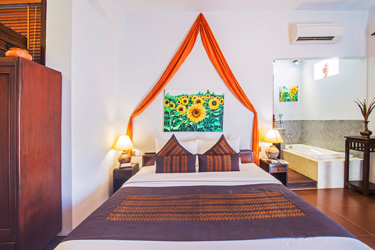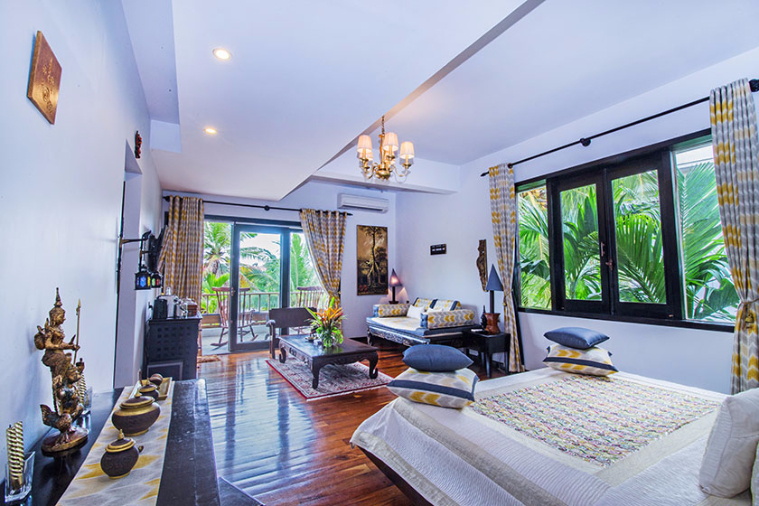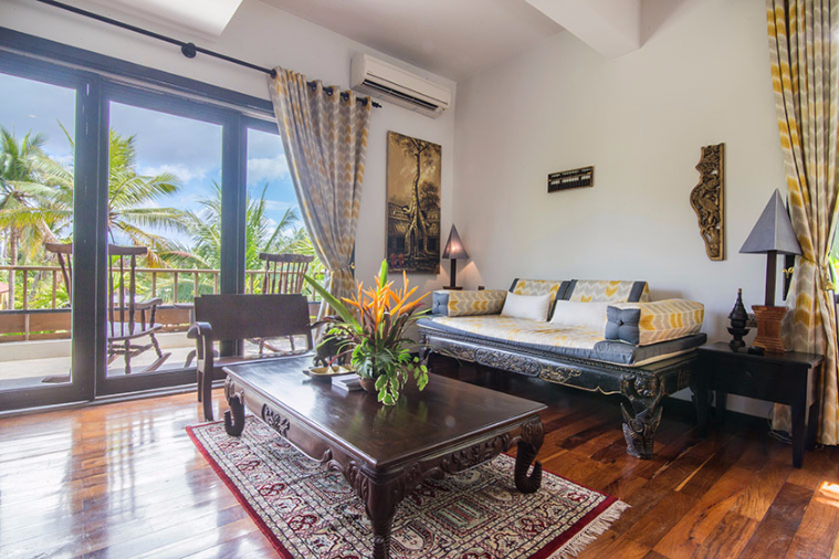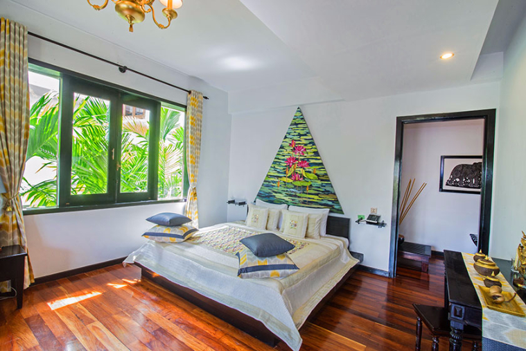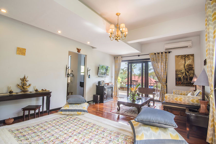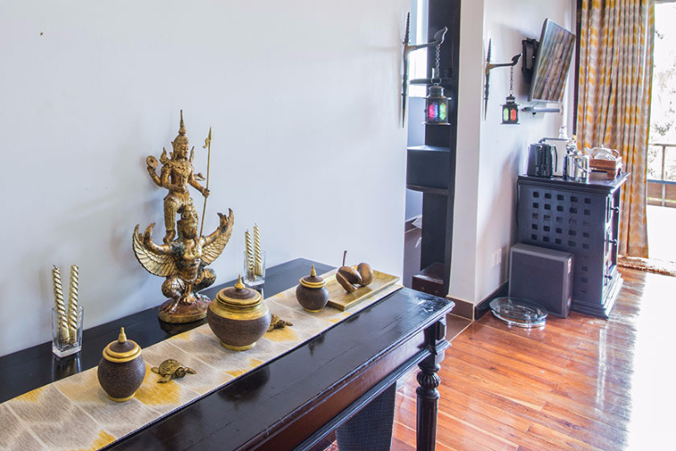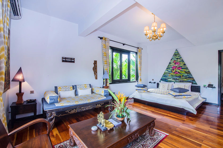 | Water hyacinth carpet and antique furniture | In room safe, 42 inch 3D cinema television with sound bar system, direct dial telephone, satellite/cable stations |