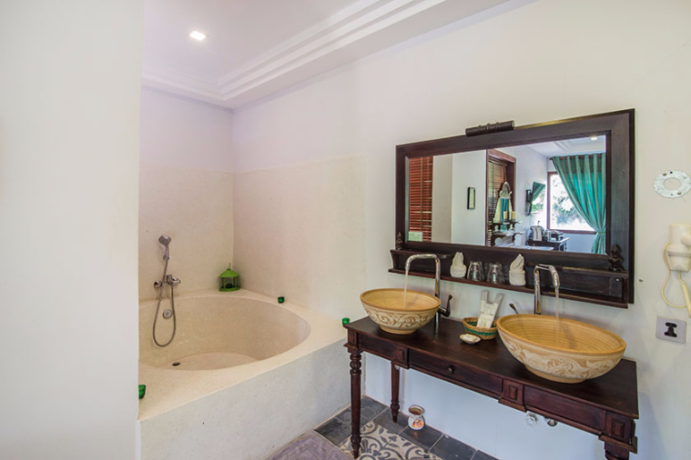 | Hand finished hardwood floors or French tile floors | All bathrooms have separate bath and shower, 8 Royal Suites have indoor bathtubs |